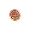 On this 7/8-inch in diameter enameled metal medallion insert is the emblem of the US Volunteer Firefighter service etched into the front face. While the medallion is brass, it bears a clean golden look where there is no etching. The disc has a diameter of 7/8 of an inch, and measures 1.4mm/0.055 inches in thickness.