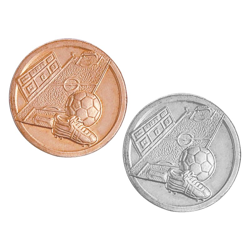This 1-inch medallion insert features a stamped design of a soccer cleat, ball, and detailed field on the front of it. Available in gold, silver, or bronze, it’s crafted to fit any medal of the same insert size. The disc is made of brass, has a diameter of 1 Inch, and measures 1.4mm/0.055 inches in thickness.