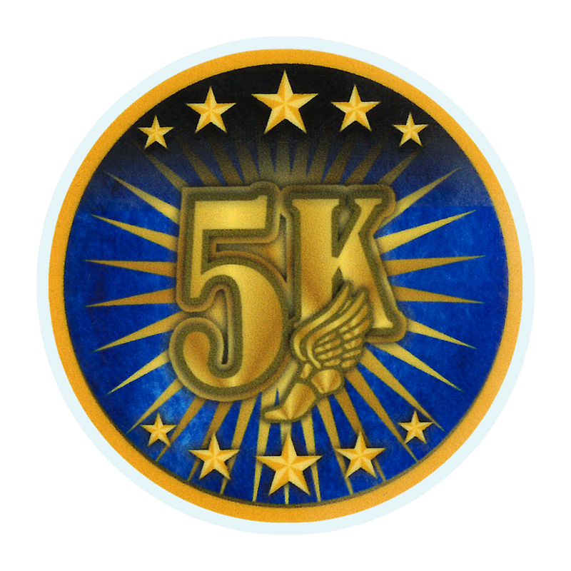 2 Inch in Diameter Round 5k Run Insert with Mylar Detailing