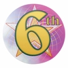 Over a white and pink background, a gold star and large '6th' are printed onto this 2 inch in diameter insert in Mylar. The insert can be fitted into any slot of the same size.