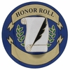 With a blue background, a set of mylar banners surround a quill and scroll with 'Honor Roll' written above them. The disc has a 2 inch diameter and can be fitted into any insert slot of the same size.