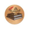 The detailing on the front of this litho-printed insert disc depicts a lamp atop a set of books. This 1.4mm/0.055in thick disc has a gold-aluminum body, is 2 inches in diameter, and a peel-and-stick back to allow it to be fitted to any insert of its size.