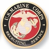 The United States Marine Corps emblem is etched onto the front of this 2 inch in diameter brass recruitment themed insert medallion, while the back face comes with a peel-and-stick feature for easy application. The medallion insert is available only in gold enameled brass, and can be fitted into any circular insert slot of the same size.