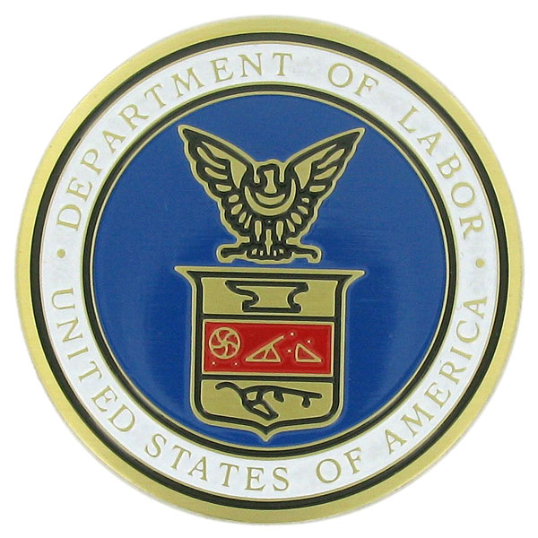 2-Inch in Diameter Round Etched-Enameled Metal U.S. Department of Labor Medallion Insert in Gold with Peel-and-Stick Back