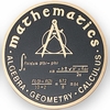 Numerous mathematical equations surrounded by 'Mathematics - Algebra - Geometry - Calculus' adorn the front face of this 2 inch in diameter etched-enameled insert medallion, while its back face has a peel-and-stick feature for easy application into any circular insert slot of the same size.