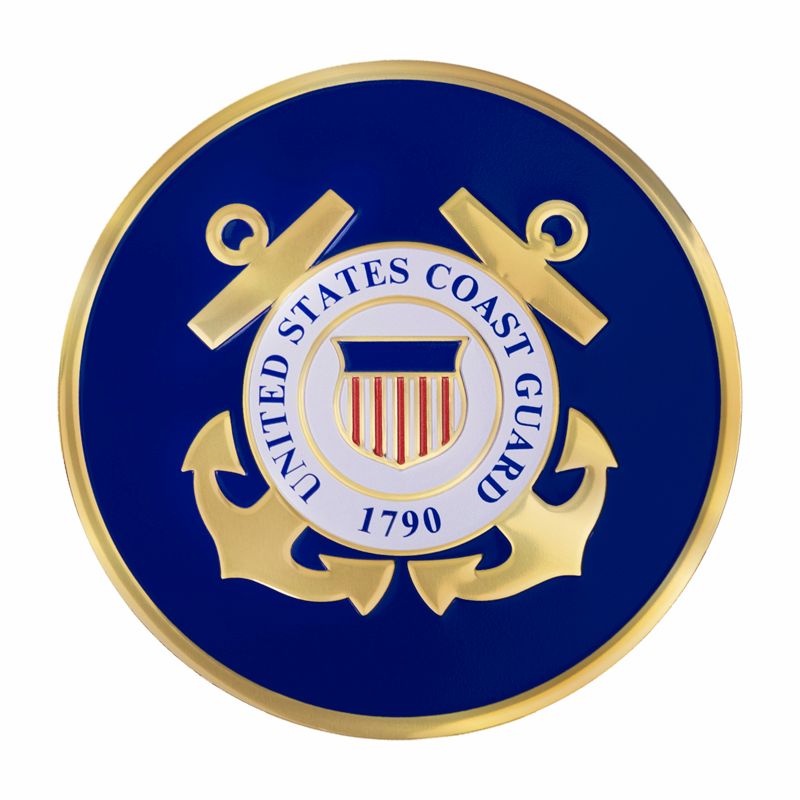 4-Inch in Diameter Embossed United States Coast Guard Round Metal Medallion Peel-and-Stick Insert