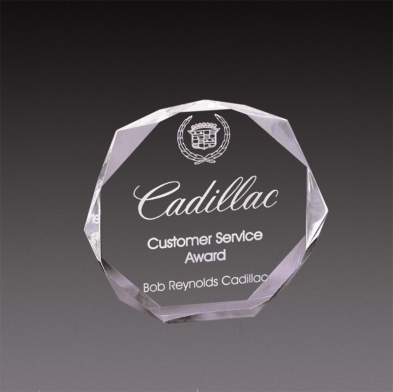 Item Description: 6"x6"x1" Corporate clear acrylic octagon shape award with beveled cut corners. Can be engraved.