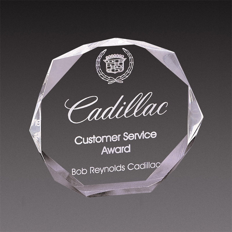 Item Description: 7"x7"x1" Corporate clear acrylic octagon shape award with beveled cut corners.