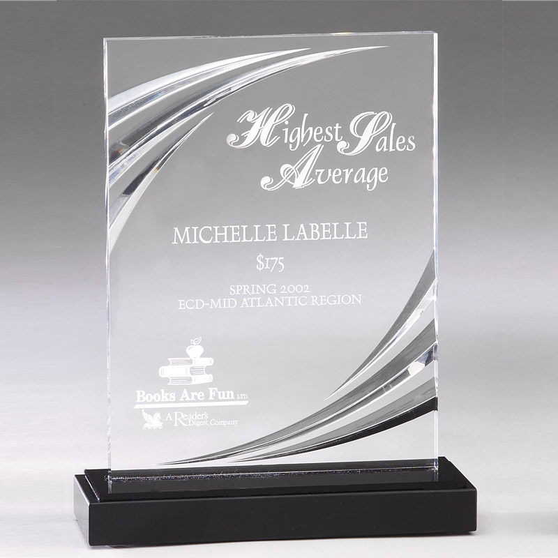 Item Description: 6" x 8" Clear machine grooved acrylic award rectangle on marble base.