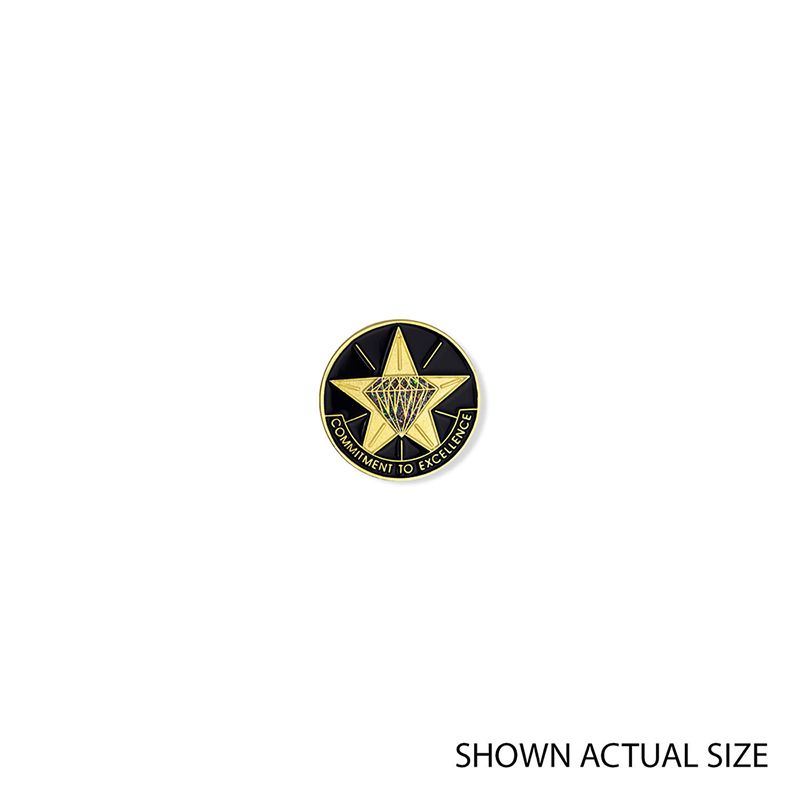 Item Description: Commitmentment to Excellence pin. Pin size is 1 inch die struck enameled gold plated pin.