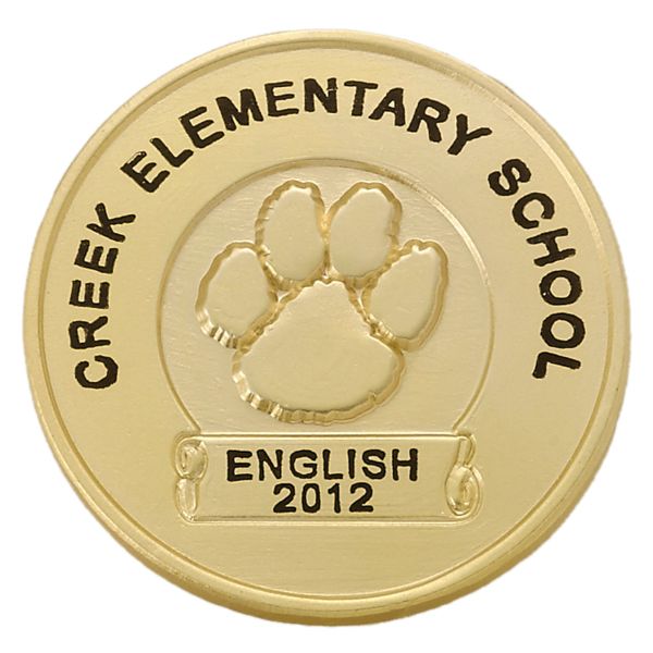 Item description: 1-1/4 inch Paw Print lapel pin with 1/4 inch border.