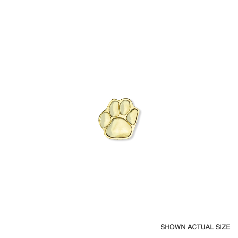 Item Description: 7/8 inch 3D bright gold paw print lapel pin.