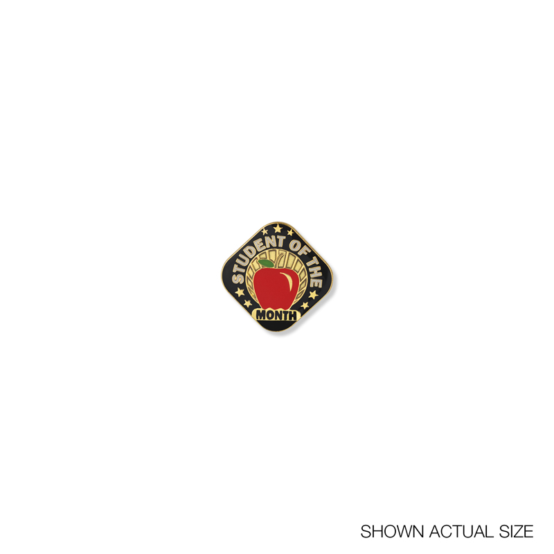 Item Description: Die struck soft enameled brass plate Student of the Month lapel pin. Pin size is 1 inch (width) x 1 inch (height).