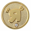 Toys R Us pin, shape round, with set diamond, polished gold plated, with sandblasted background, quality spring loaded clutch finding, with jewelry presentation box.