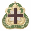 Responsive and Dedicated insignia, 3 colors hard stoned epoxy enamel, gold plated with 2 nails and military clutches.