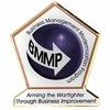 Business Management Modernization program pin, size 1-1/4 inch, special shape, brass metal, 5 silk screened colors, clear epoxy coating, nail and butterfly clutch finding.