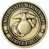 United States Marine Corps Semper Fidelis, satin antique brass finish, 3-dimensional.
