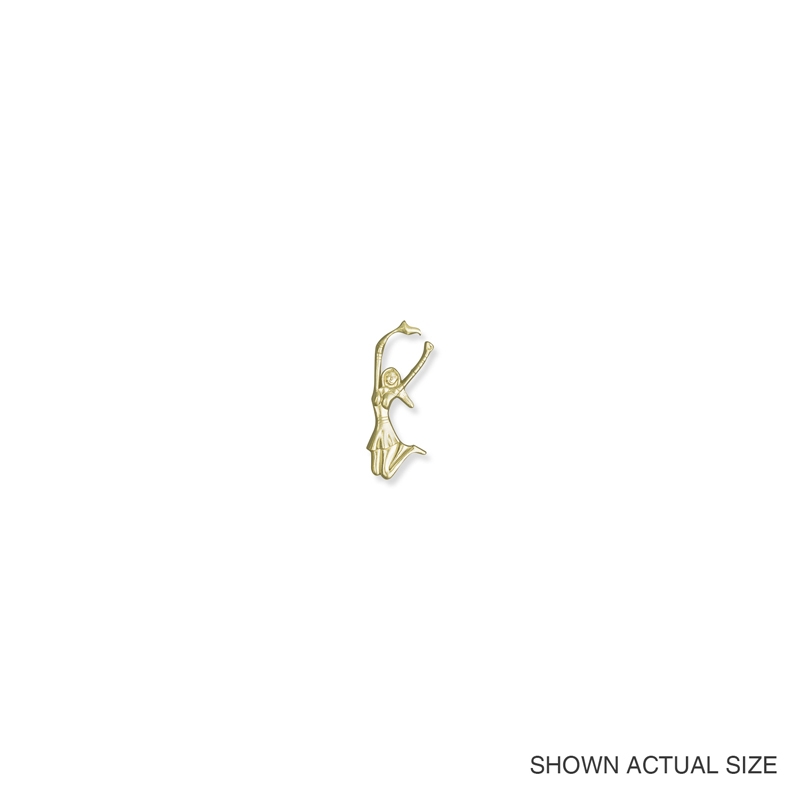 The cast gold pin has extra long nail, 7/16 inch with clutch so it can be attached to school letter.