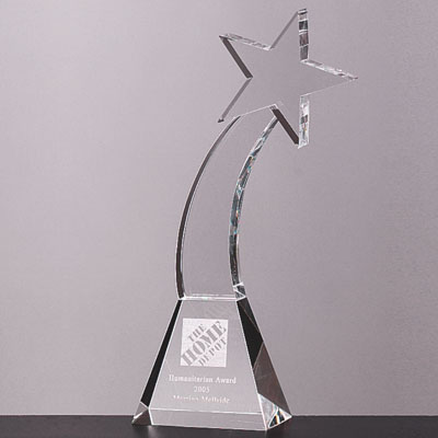 Item Description: 9-3/4 inch x 4-1/2 inch x 3/4 inch thick, Optical Cut Crystal Shooting Star.