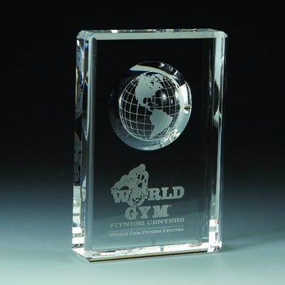 Item Description: 6 inch x 4 inch Optical Crystal With Recessed Globe.