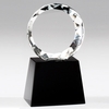 Item Description: 5-1/4 x 3 inch Round Faceted bevel cut optical crystal mounted on black crystal base. Comes with black aluminum engraving plate.
