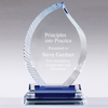 Item Description: 7" x 4-1/2" optical arrow pointed flame crystal award with blue base. Comes with deluxe presentation box. Can be engraved.
