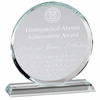 Item Description: 6-1/2 x 6-1/2 inch optical crystal round shape award with flat area for engraving/personalization. Delivered in deluxe presentation gift case.