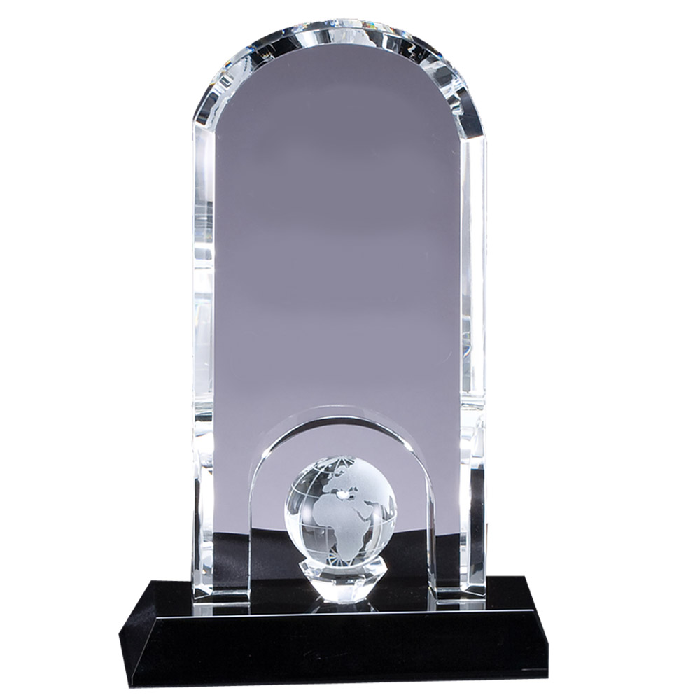 Item Description: 6 x 8-3/4 inch optical crystal dome and globe on plank award. Comes with deluxe presentation box.