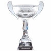 Item Description: 15 x 10-1/2 inch Optical Cut Crystal Elegant trophy cup. Comes with blue velour deluxe presentation box.
