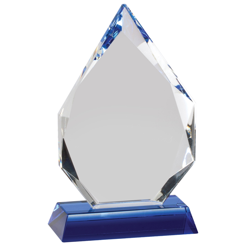 Item Description: 6-3/4 x 4 inch Arrowhead crystal award with beveled edges and a blue base. Comes with deluxe presentation box.