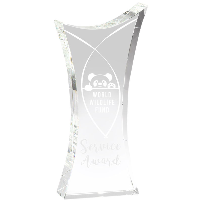 Item Description: Optical crystal angled shape tower award - crystal is extra thick and sturdy. Size is 10 (height) x 4-1/2 (width) inches. Comes packed in a presentation box.
