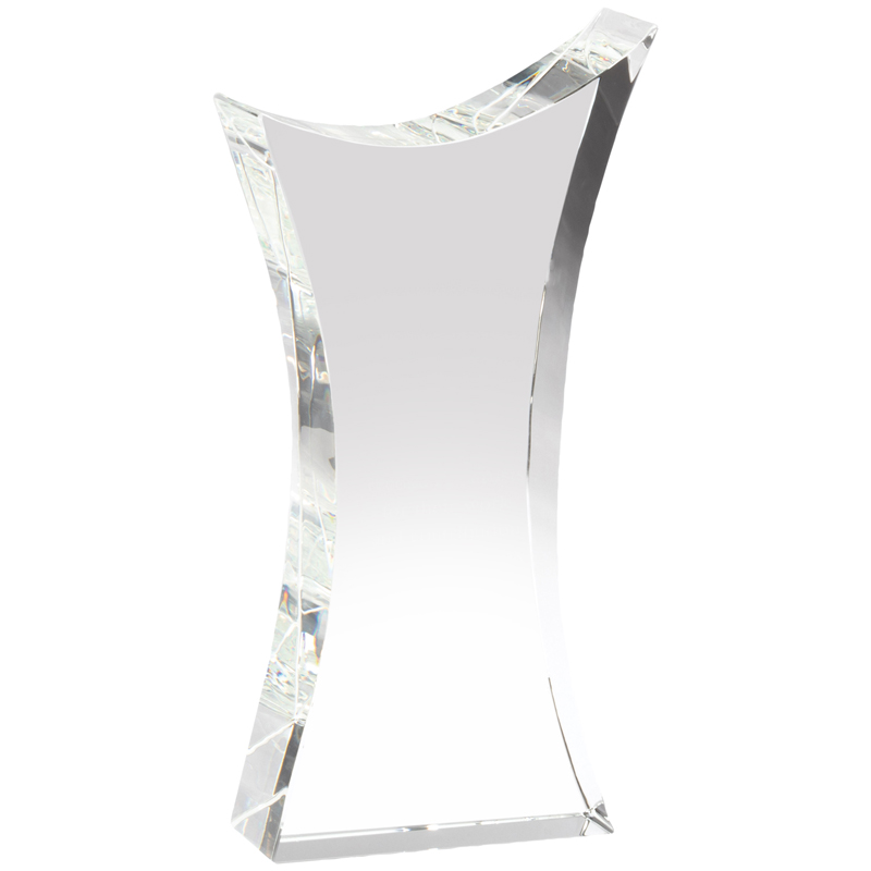 Item Description: Optical crystal angled shape tower award - crystal is extra thick and sturdy. Size is 8-1/2 (height) x 4 (width) inches. Comes packed in a presentation box.