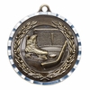 This 2 inch hockey medal is engraved on its front with a hockey skate, stick, and goal all encompassed by a detailed wreath that perimeters the whole image. The edge of the medal is diamond cut to give it a silver perimeter, the back has room for a custom engraving or imprint, and the medal is available in gold, silver, or bronze, each with an antique finish.