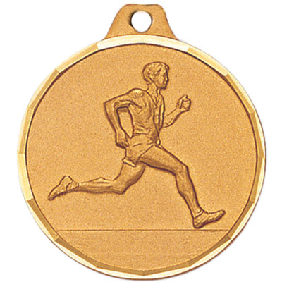 1-1/4 Inch Die-Struck Mens Track Medal in Gold, Silver, or Bronze
