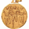 The front face of this 1-1/4 inch die-struck sports medal illustrates a group of runners finishing a marathon together, as well as a diamond-cut scalloped border that adorns the edge of the medal. This is available in gold, silver, or bronze, and the back face can be custom engraved or imprinted. - IMPRINTING COPY MUST ALL BE THE SAME.