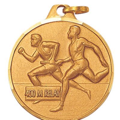 1-1/4 Inch Die-Struck Mens 400 Meter Relay Medal in Gold, Silver, or Bronze