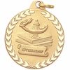 This 1-1/4 inch die-struck medal is engraved with a variation of the 'wreathed lamp' design depicting a lamp atop two books with a scroll reading 'Citizenship' in front of them, as well as the same wreathed pattern of leaves decorating the border present on the original design. The back face of the medal can be engraved or imprinted and it is only available in gold. - IMPRINTING COPY MUST ALL BE THE SAME.