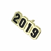 Item Description: 2019 enameled chenille lapel pin. Bright gold color finish with long nail clutch. Size is 5/8 inch width x 1/8 inch height.
