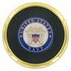 Item description: Gold plated metal coaster comes with 2 inch United States of America Navy insert, bordered with black leather, black felt bottom.