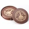 Item Description: 3-1/2" Black Leatherette Coasters. Can be lazer engraved in gold lettering.