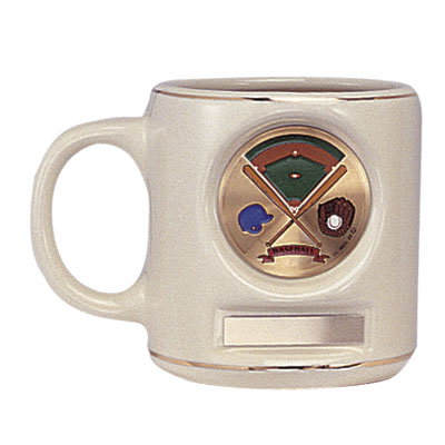 Item description: 12 ounces white ceramic coffee mug holds takes 2 inch insert and plate.