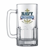 Item Description: U.S. Navy glass stein, 1 liter capacity. Fully wrapped logo officially licensed with scroll banner for name and rank personalization. Height is 8 inch and 4 inch diameter.