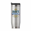 16 OUNCE U.S. NAVY STAINLESS STEEL TRAVEL MUG WITH BANNER FOR PERSONALIZATION NAME AND RANK