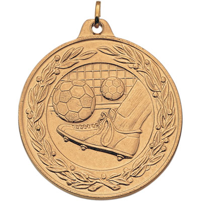 2 Inch Die-Struck Soccer Themed Medal with Antique Finish in Gold or Silver