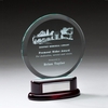 Glass award on Rosewood base with silver engraving plate. Comes with Gift box.