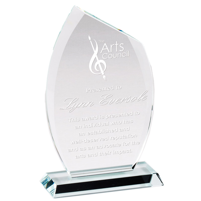 Item Description: 7" x 4-1/4" x 3/8" inch Premium Glass flame award polished and cut beveled edges. Gift boxed.
