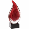 Item Description: Hand blown art sculptured glass award with red swirl accents in a tear drop shape on a black crystal base. Comes with a gold matte engraving plate. The base dimensions are 2-1/2 (width) x 1-1/4 (height) inches. The total height of the award is 8-3/4 inches. Comes packed in a deluxe presentation box.