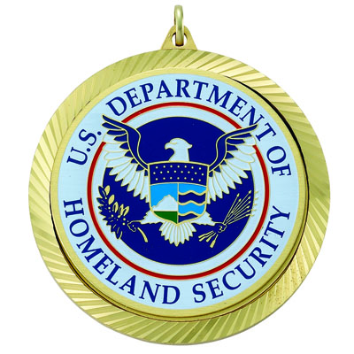 Item Description: 2 3/8 inch die struck brass medal frame holds 2 inch U.S. Department Of Homeland Security etched enameled medallion or an insert of your choice.