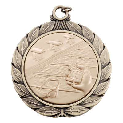 2 3/4 inch die cast medal frame holds 2 inch Swimming medallion.