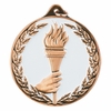 This 2-1/2 inch enameled die-cast medal is engraved on its front face with an image of a flaming torch held up within a bordering laurel wreath. It is available only in antique-finish bronze, and the back face can be custom engraved or imprinted.